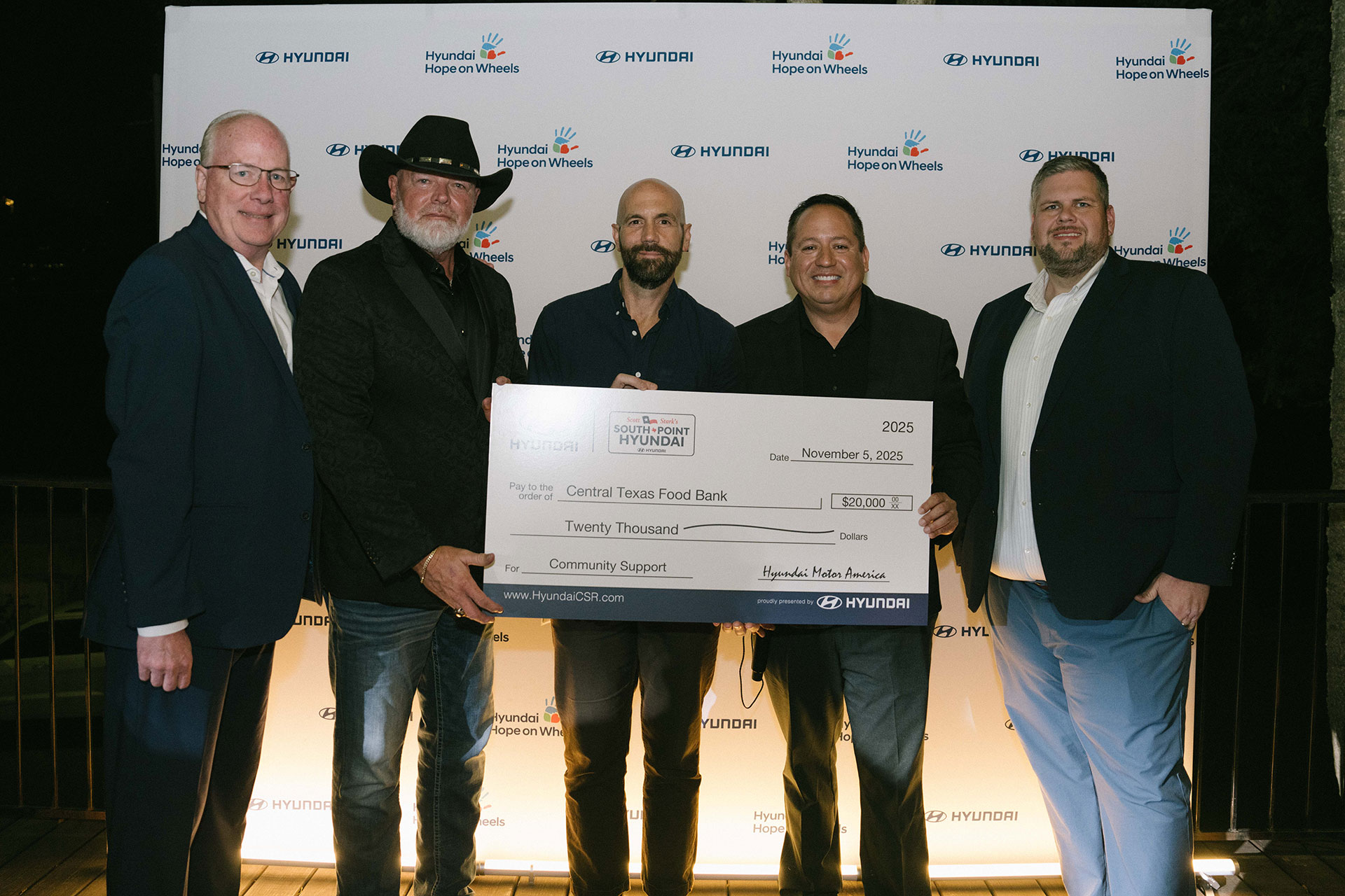 AUSTIN, Texas, Nov. 7, 2025 – Hyundai Motor America, in partnership with Hyundai Hope on Wheels and South Point Hyundai, reaffirmed its commitment to children’s health in Austin through two impactful donations. A $20,000 donation to the Central Texas Food Bank (CTFB) will help expand hunger relief programs for local families, while a $20,000 donation to Dell Children’s Medical Center of Central Texas will strengthen pediatric cancer care and support services.