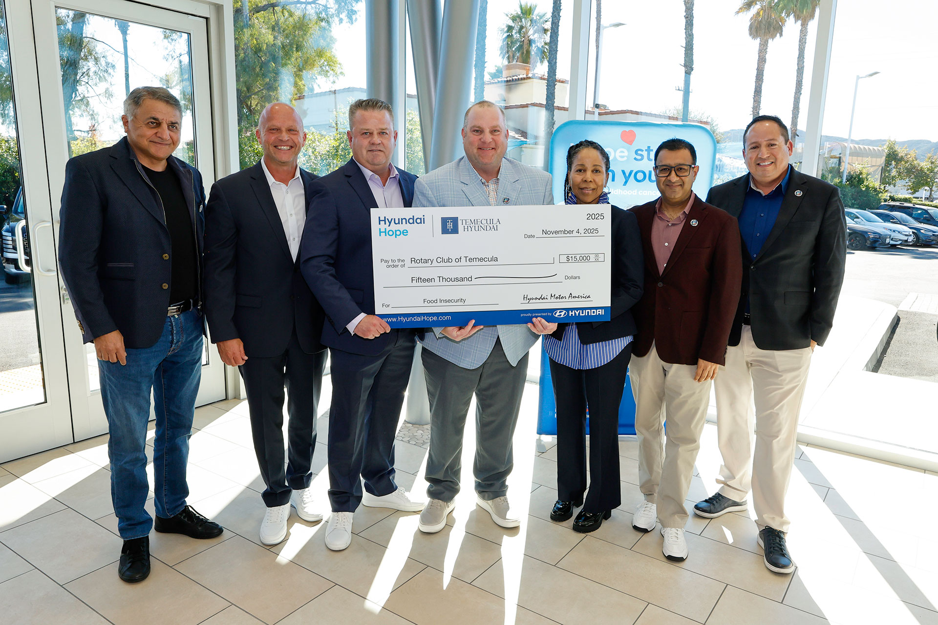 Hyundai and Temecula Hyundai supported the Rotary Club of Temecula for its hunger relief programs. The donation will support the Thanksgiving Baskets program, which delivers food boxes to over 300 families throughout the Temecula Valley. This annual community initiative ensures that hundreds of individuals and families can celebrate the holiday with gratitude and dignity.